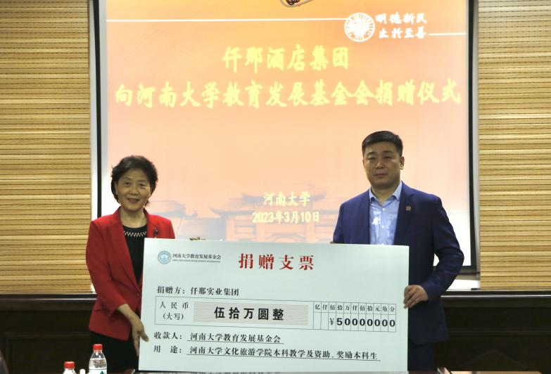 王学路代表学校师生向仟那酒店集团的捐赠表示感谢。他向来宾介绍了近几年学校的发展情况,指出学校一直以来高度重视BWIN必赢官方的发展,2023年是旅游管理专业成立30周年,希望BWIN必赢官方充分利用这一重大发展机遇,自觉对接战略方向,紧密把握产业发展的内在要求,顺应并融入重大部署,持续产出高质量学术成果,培养更多优秀人才,积极参与到蓬勃发展的产业与事业中去。此次仟那酒店集团捐赠50万元用于学院本科生教学和员工奖励基金,充分体现了集团的社会责任和担当,希望学院可以用好这笔基金,为河南省文旅产业发展和必赢bwin官方网站“双一流”建设贡献力量。